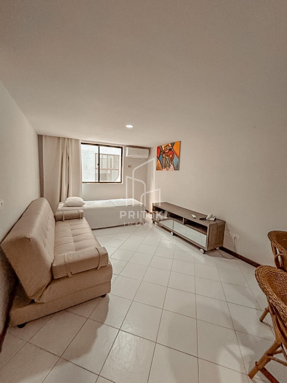 • Sala ampla, com possibilidade de adaptação para segundo quarto (sofá-cama, biombos, etc.)